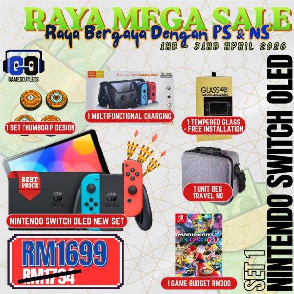 This bundle ensures optimal gaming performance with the multifunctional stand designed specifically for the Nintendo Switch OLED, offering flexible viewing angles for both tabletop and docking modes. Add a touch of style and control with the thumb grip set, which enhances grip during intense battles and allows better precision in gameplay. Plus, you’ll even get a game of your choice—the perfect addition to start or expand your collection—all within a budget below RM300!